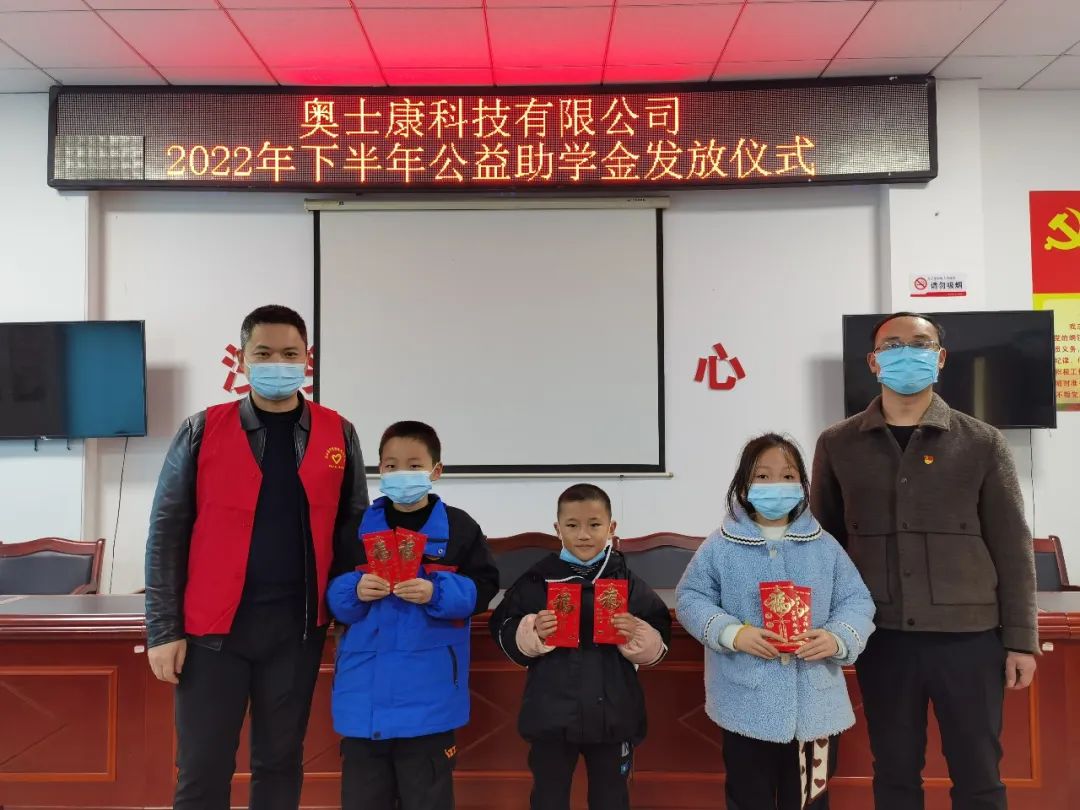 2022年12月10-11日,奧士康科技股份有限公司的志愿者服務隊再次帶著程涌董事長和賀波總經理的關愛,來到資陽區各鄉鎮,以真切的祝福和慰問為孩子們送上了一份冬日溫暖。本次共為201名資助學生發放獎、助學金共24萬元。拳拳真心滿載于愛心助學,片片真情寄托于暖心關懷。人力資源部負責人肖俊代表公司將慰問金交到孩子們和學生家長手上,并鼓勵孩子們保持積極開朗的心態,勤奮學習、孝敬長輩,爭取用優異的成績改變自己的命運,做一個對社會有益的人。