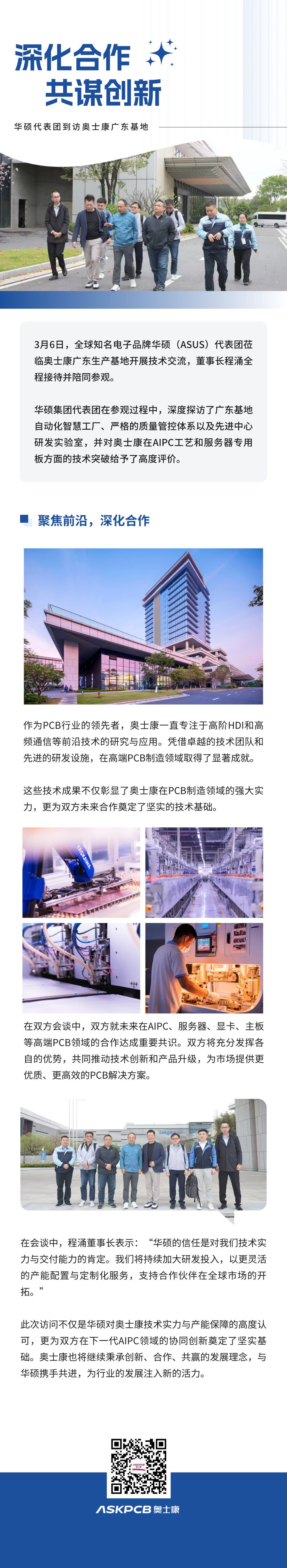 華碩代表團到訪奧士康廣東基地,共探高端PCB技術新未來
